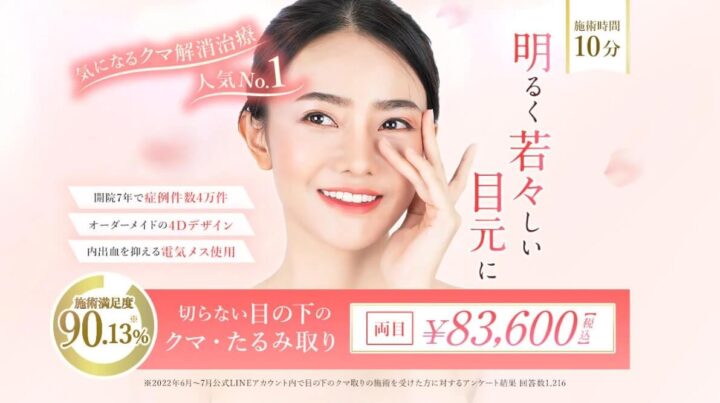 「切らない目の下のクマ・たるみ取り」の施術が、開院からわずか7年で症例件数4万件という豊富な実績もあります。