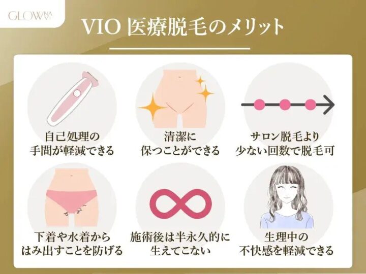 VIO医療脱毛は、通常の脱毛同様に自己処理による手間や肌荒れリスクが減少するほか、なおかつ見た目や衛生面を向上させるメリットが大きい施術です。